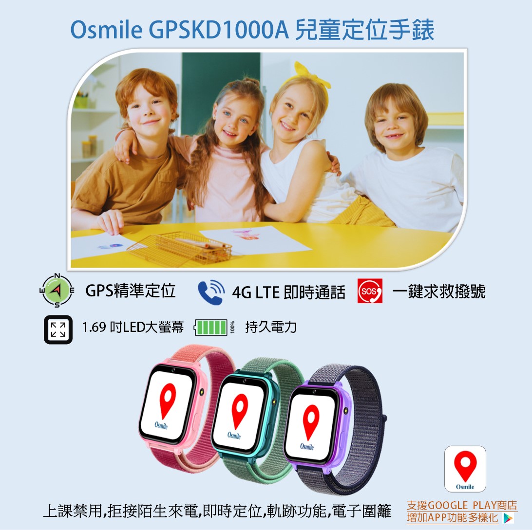 Osmile GPS1000 (L) 兒童安全健康管理手錶 (含定時開關機、體溫量測、生理量測、計步管理、跌倒警示、來電自動接聽、陌生來電拒接、手錶防丟、SOS緊急求援、GPS定位防走失、電子圍欄安全範圍設定、遠距安全管理、遠距生理量測與健康管理、視訊及語音通話)